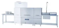 Ce lave vaisselle à avancement automatique peut-être complété d’une zone de séchage, de tables de service, d'une hotte d’extraction de buées et d'une pompe à chaleur proposés en options.