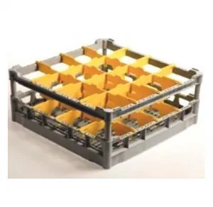 Ce panier carré avec séparateur pour 16 verres d'un diamètre de 113mm et d'une hauteur de 165mm est réalisé en polypropylène.