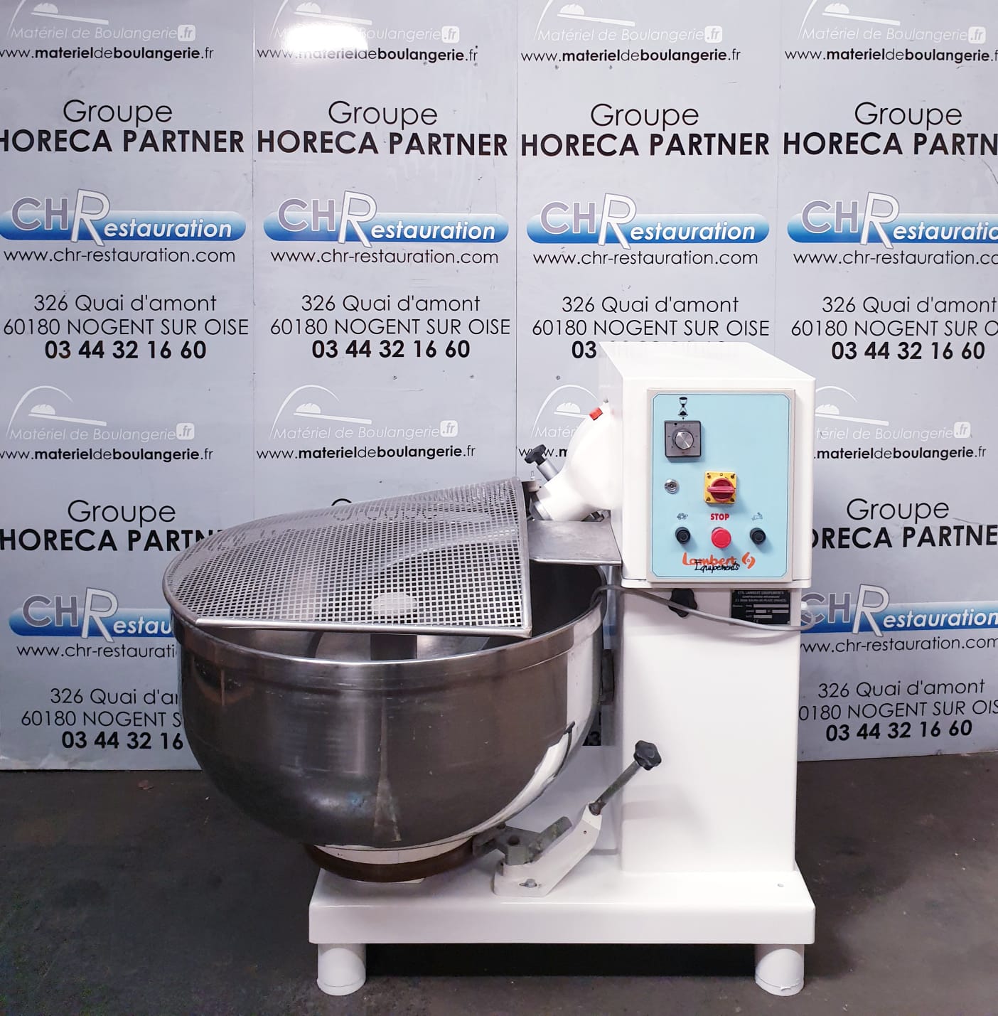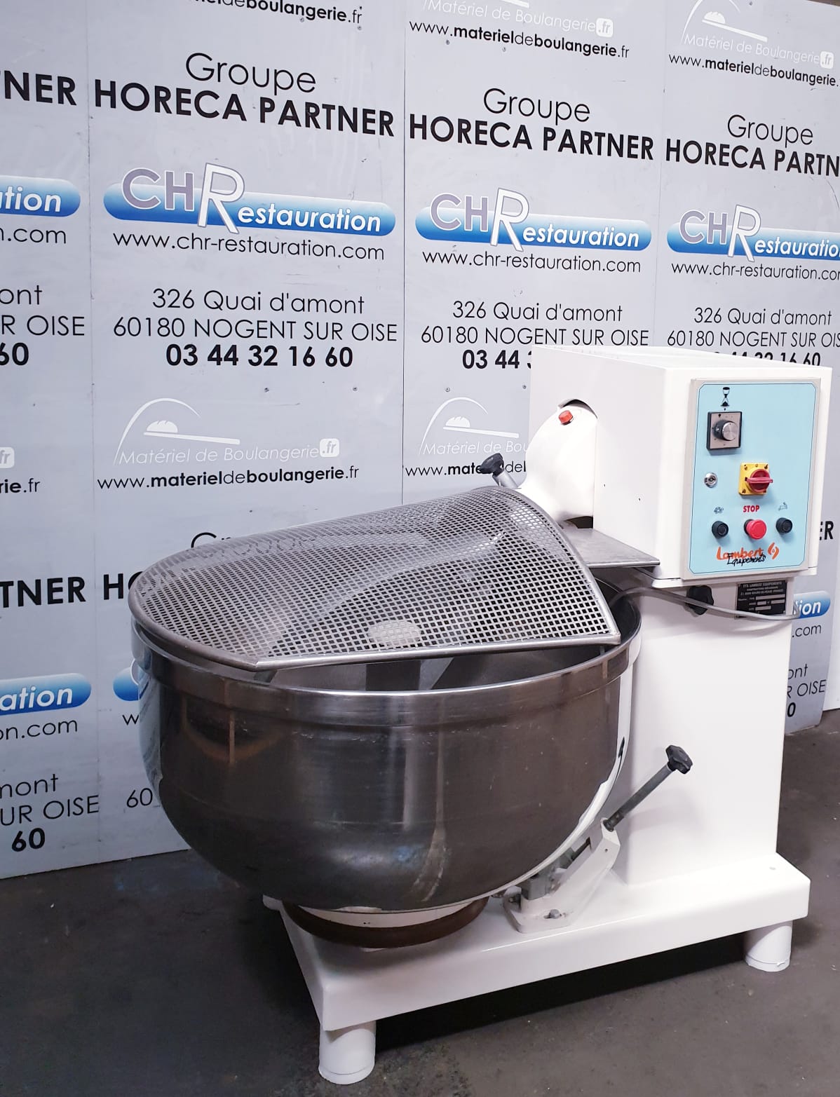 Ce pétrin de marque LAMBERT possède une en inox d'une capacité de 45L de coulage soit 120kg de pâte.
