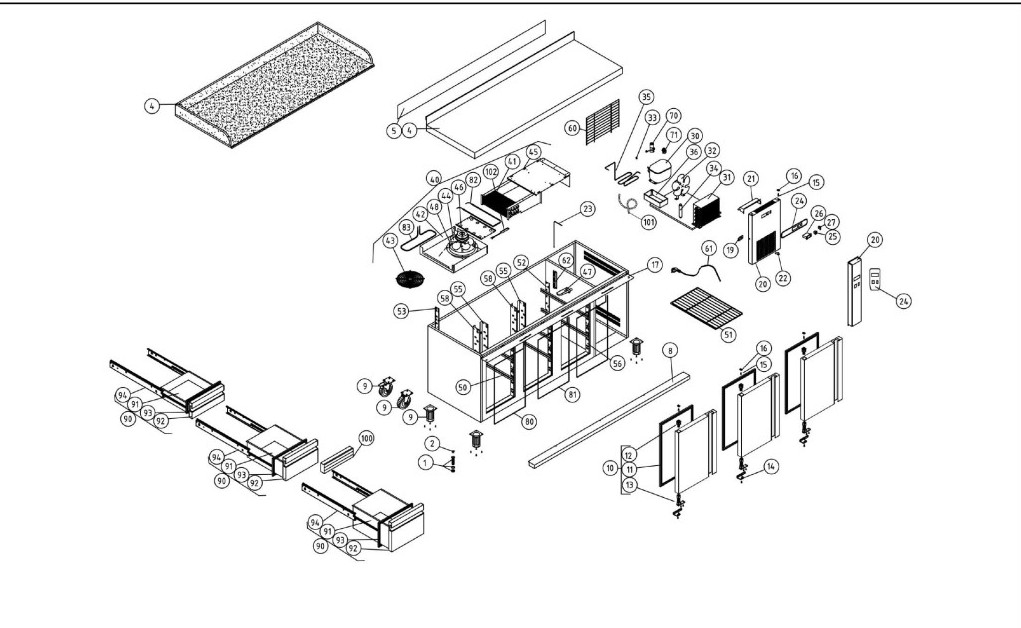 Thermostat de travail, thermostat de sécurité, sonde,compresseur, évaporateur, condenseur, gicleurs d'eau,ventilateur, composantes électriques........