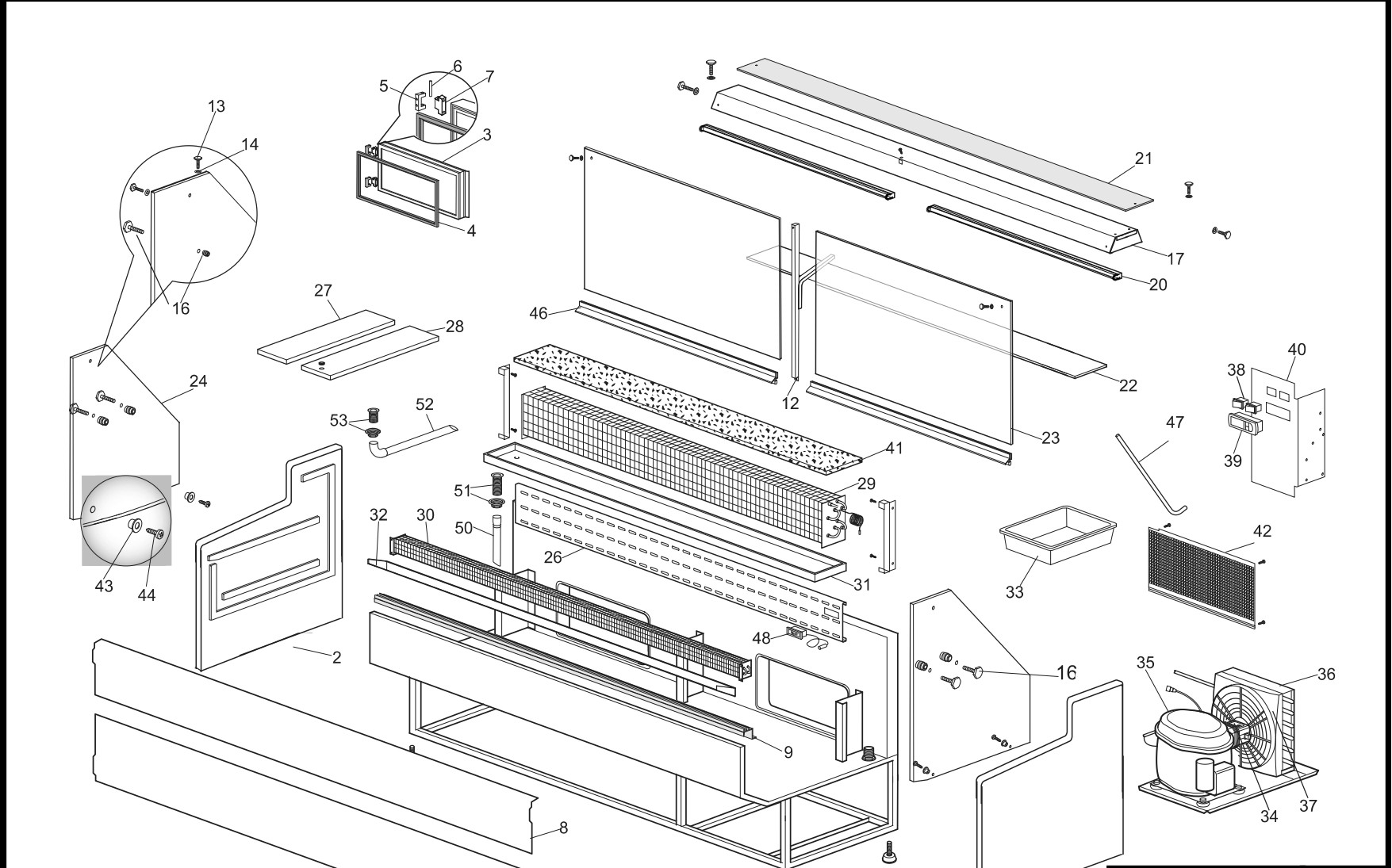 Pièces détachées pour vitrine réfrigérée de présentation VIRTUS