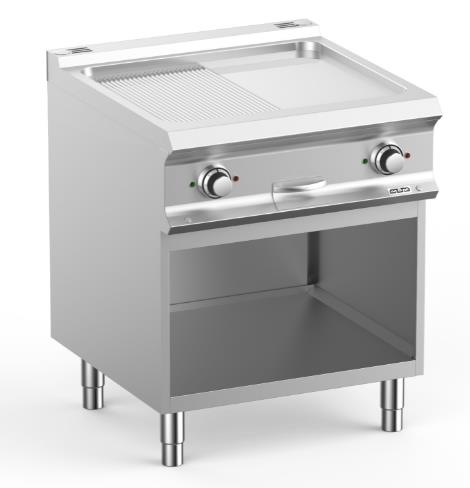 Plancha professionnelle électrique 1 zone lisse et 1 zone rainurée sur placard ouvert MBM - DOMINA PRO 700