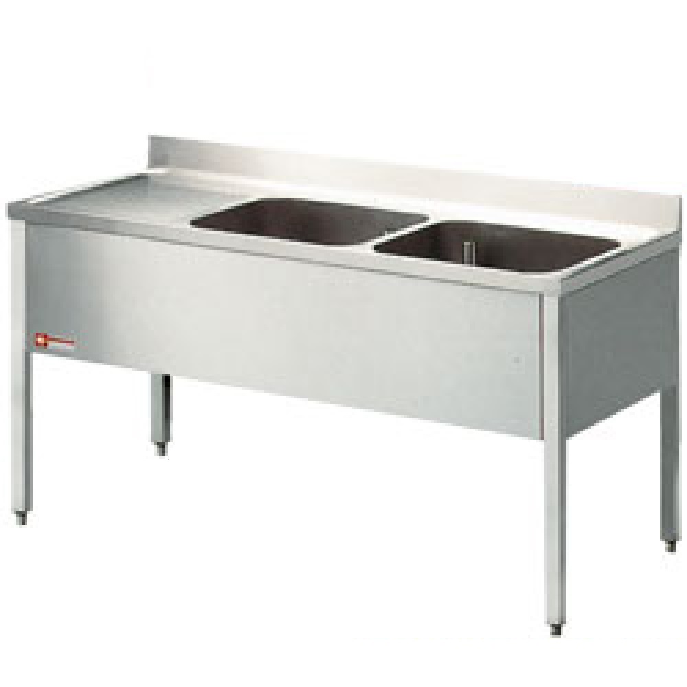 Plonge inox 2 bacs égouttoir à gauche 1600x700mm DIAMOND