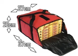 Pour le transport des Pizzas en boîtes. Matériel robuste lavable à l'intérieur et à l'extérieur. Rembourrage pour garantir le maintien de la température. Sangle pour le transport et poche transparente pour la quittance.