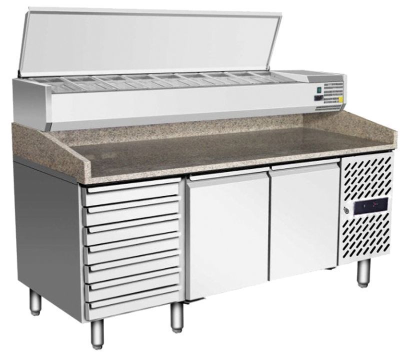 Meuble à pizza 2 portes réfrigérées et 7 tiroirs neutres ATOSA